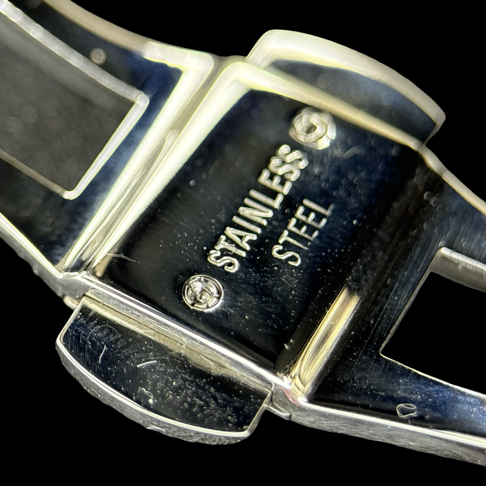 The stainless steel link bracelet gives it a polished, heavyweight look while staying comfortable for daily wear.