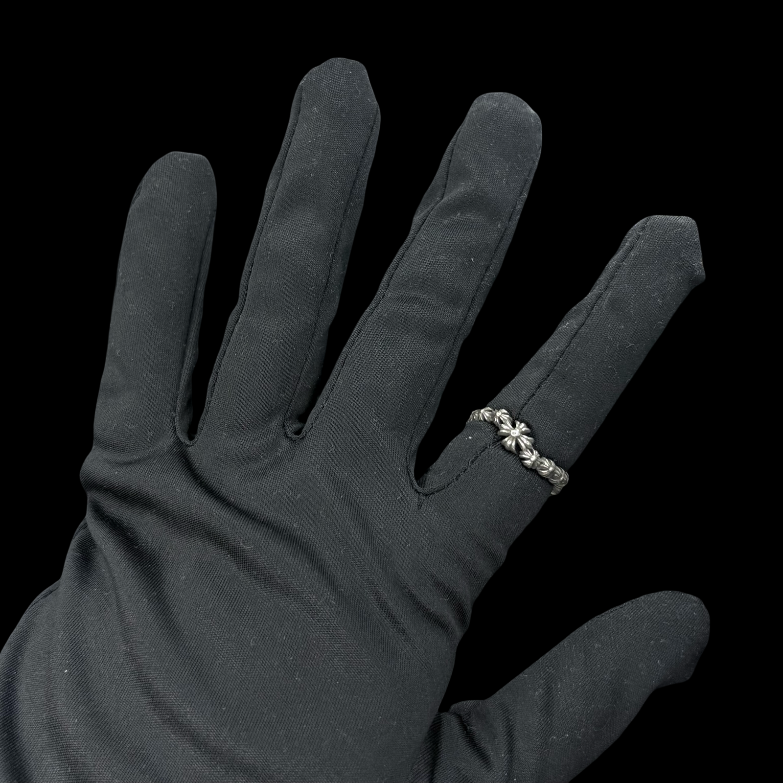 Inspired by the original Chrome Hearts ring, this piece is crafted from stainless steel and comes in a US size 8 as per chart 18 It features a blurry engraving of “Chrome Hearts” inside the band and is non-adjustable, offering a stylish and durable option for everyday wear.