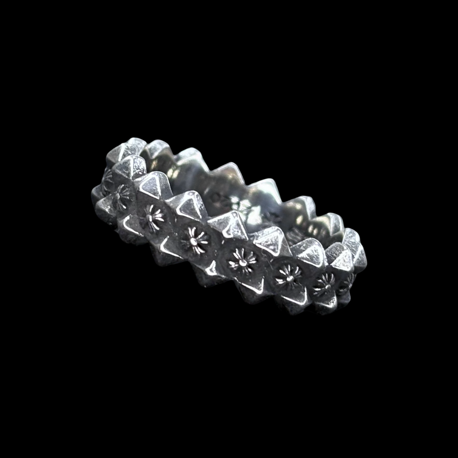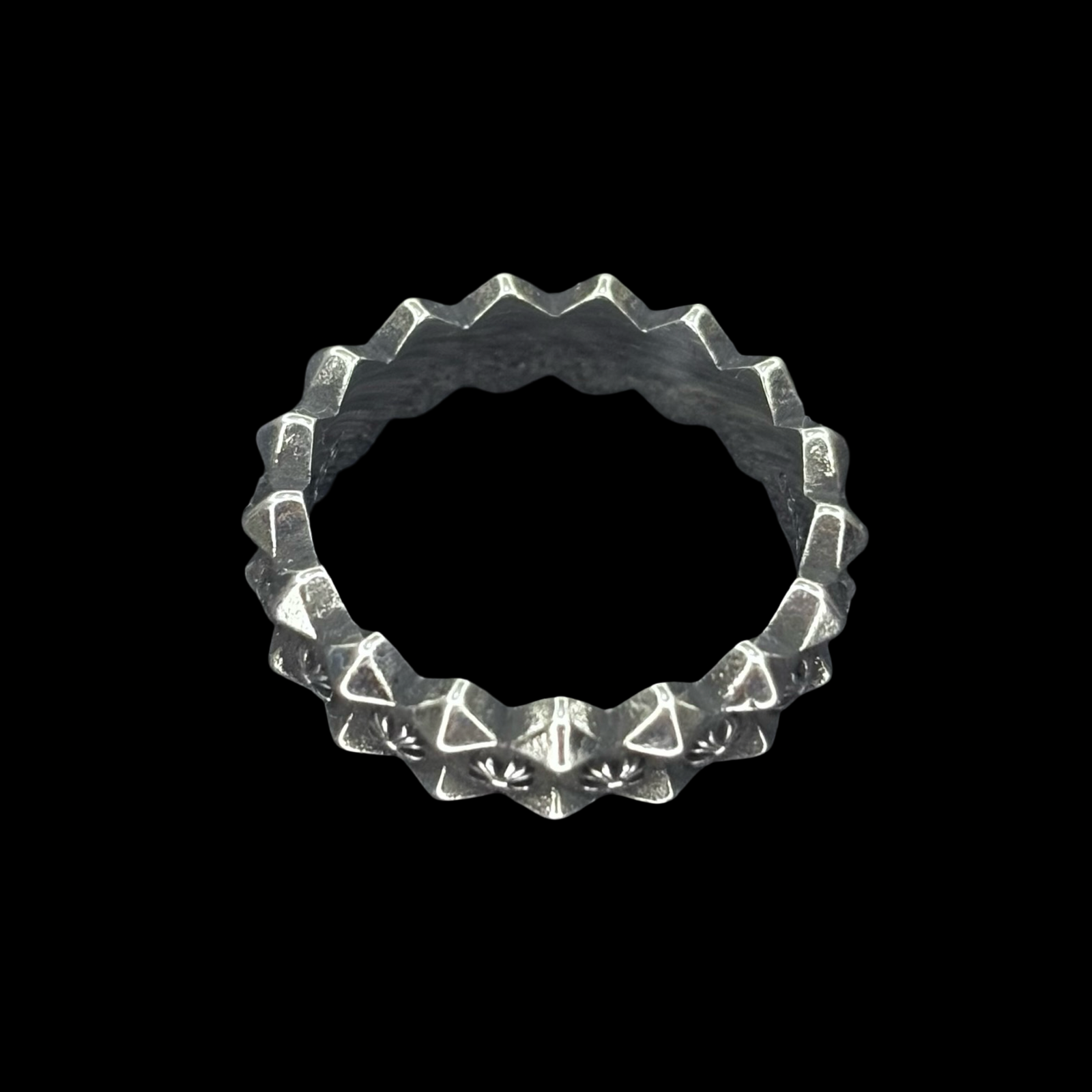 Inspired by the original Chrome Hearts ring, this piece is crafted from stainless steel and comes in a US size 7 as per chart size 17. It features a blurry engraving of “Chrome Hearts” inside the band and is non-adjustable, offering a stylish and durable option for everyday wear.