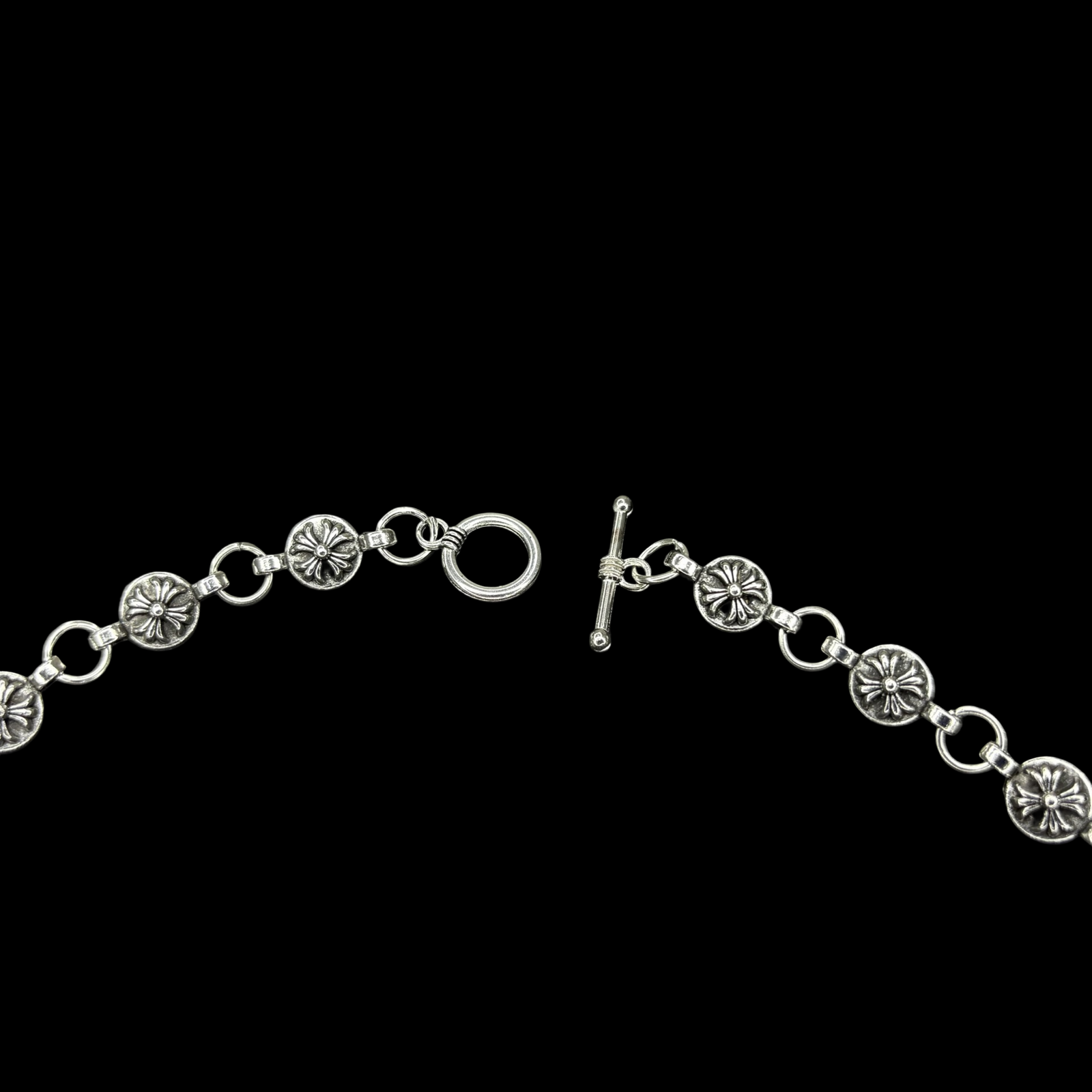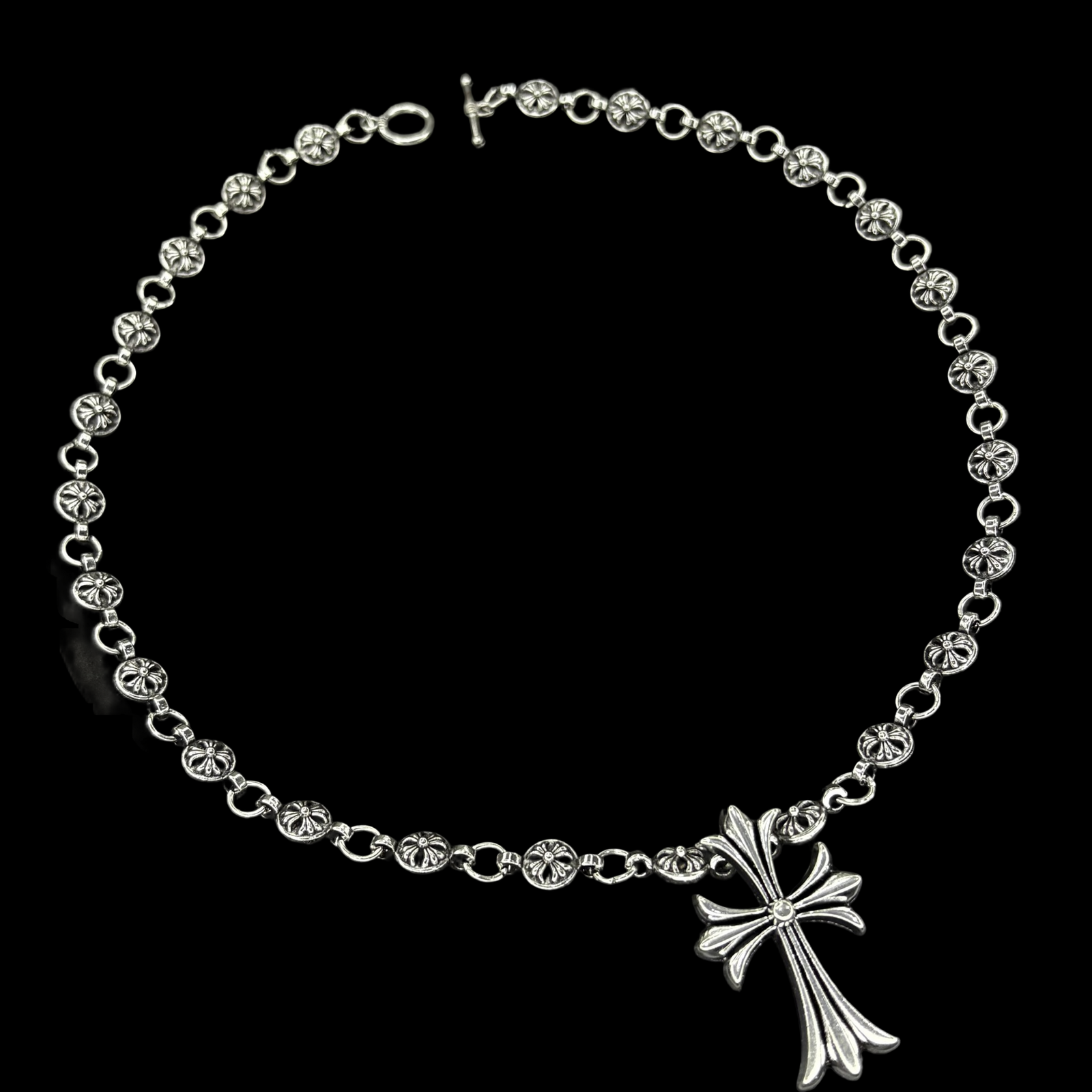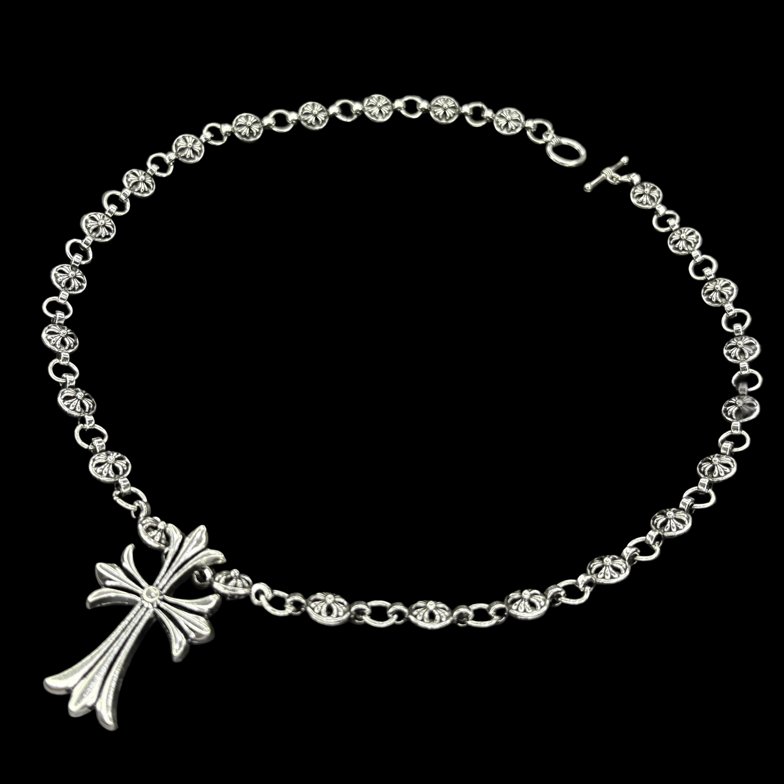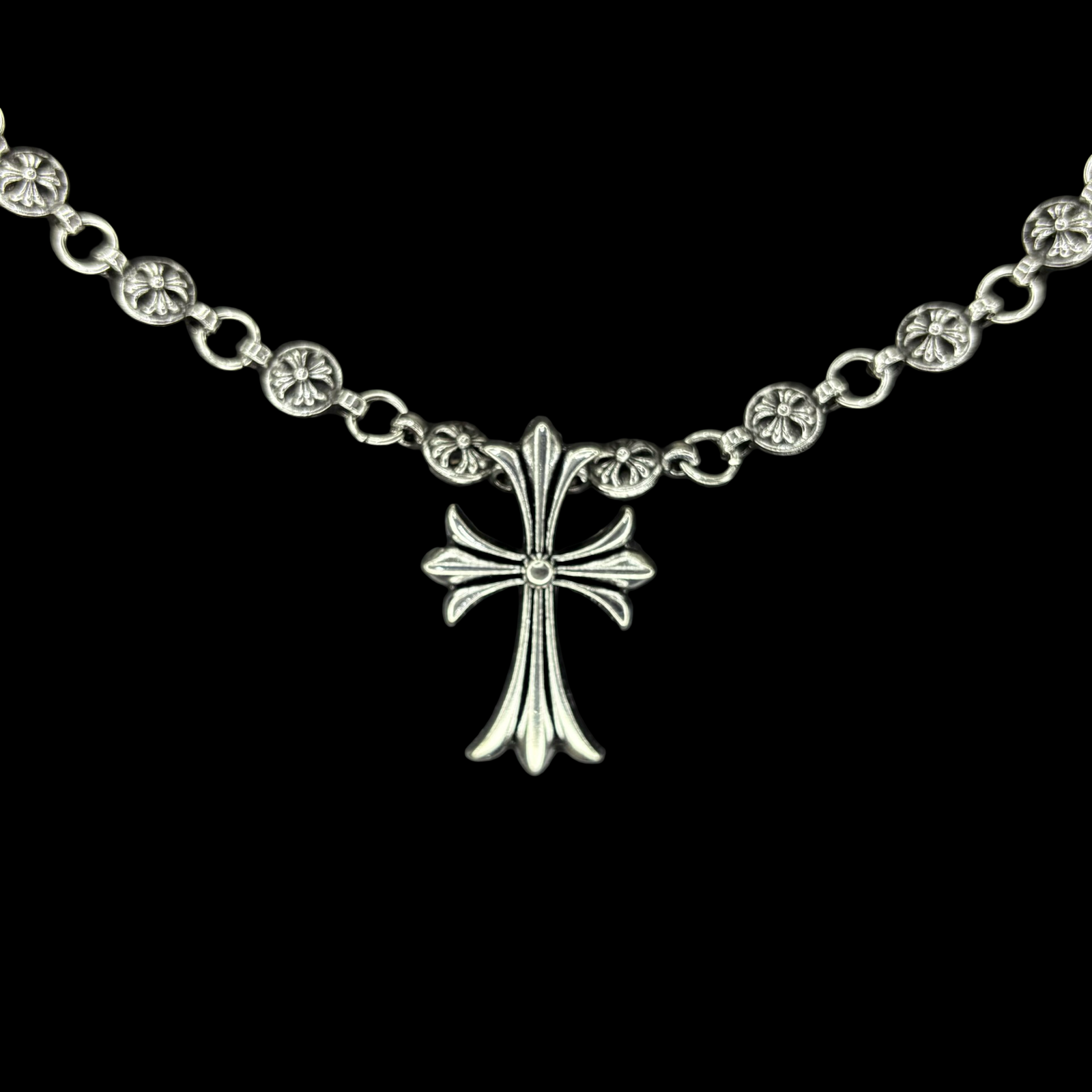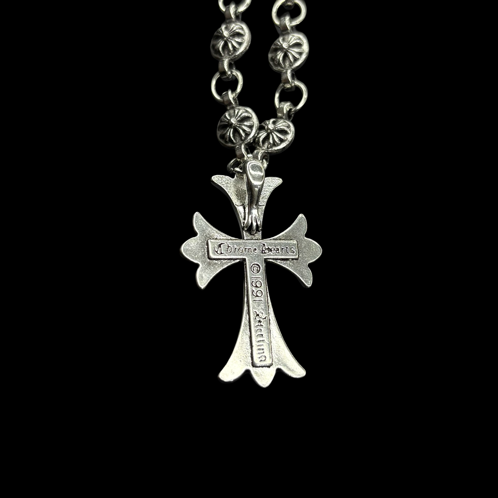 This durable 48 cm necklace features a 3 cm pendant, both crafted from high-quality stainless steel. Waterproof and tarnish-proof, it ensures long-lasting wear and shine. Inspired by the iconic Chrome Hearts design, this piece combines style and resilience, offering a premium look and feel.
