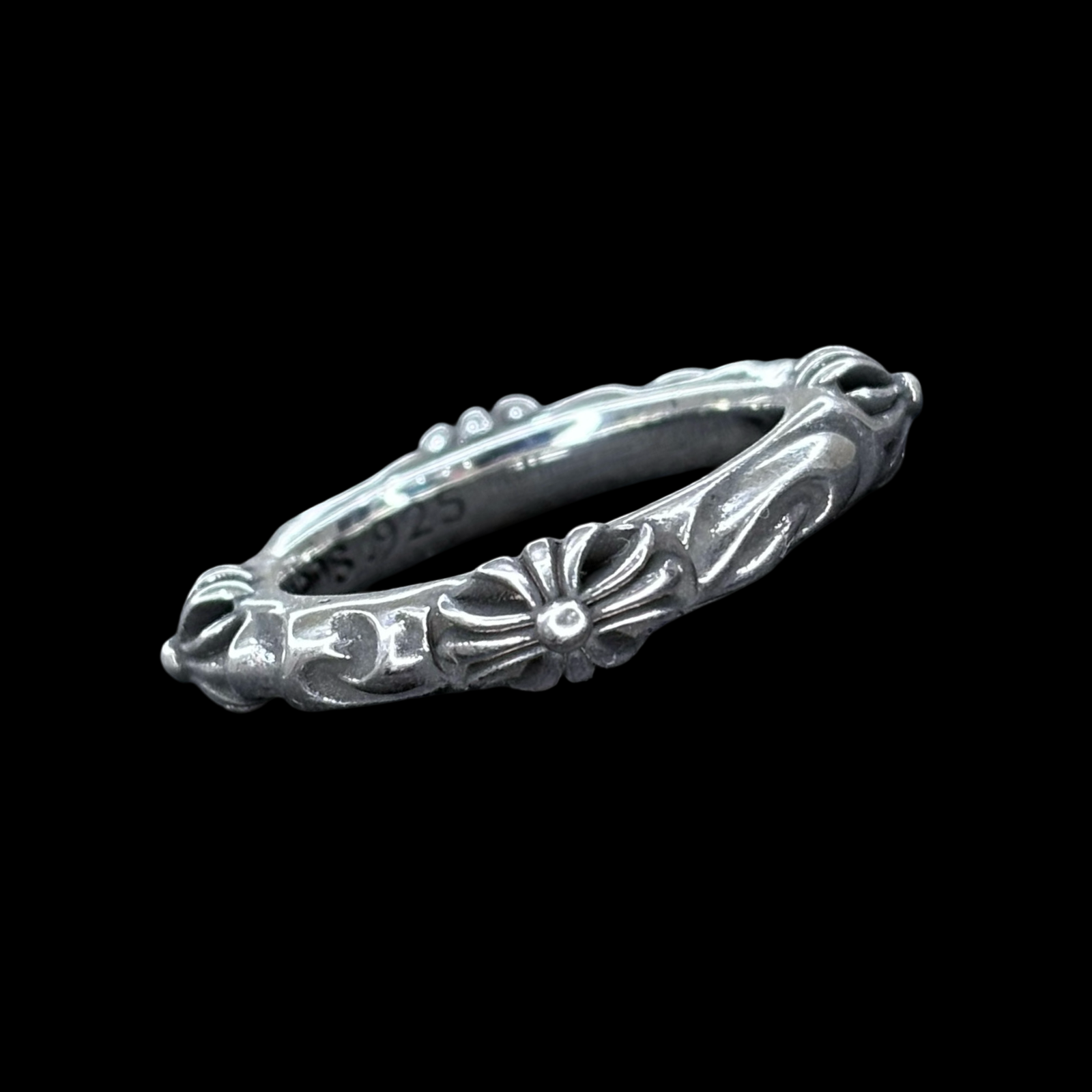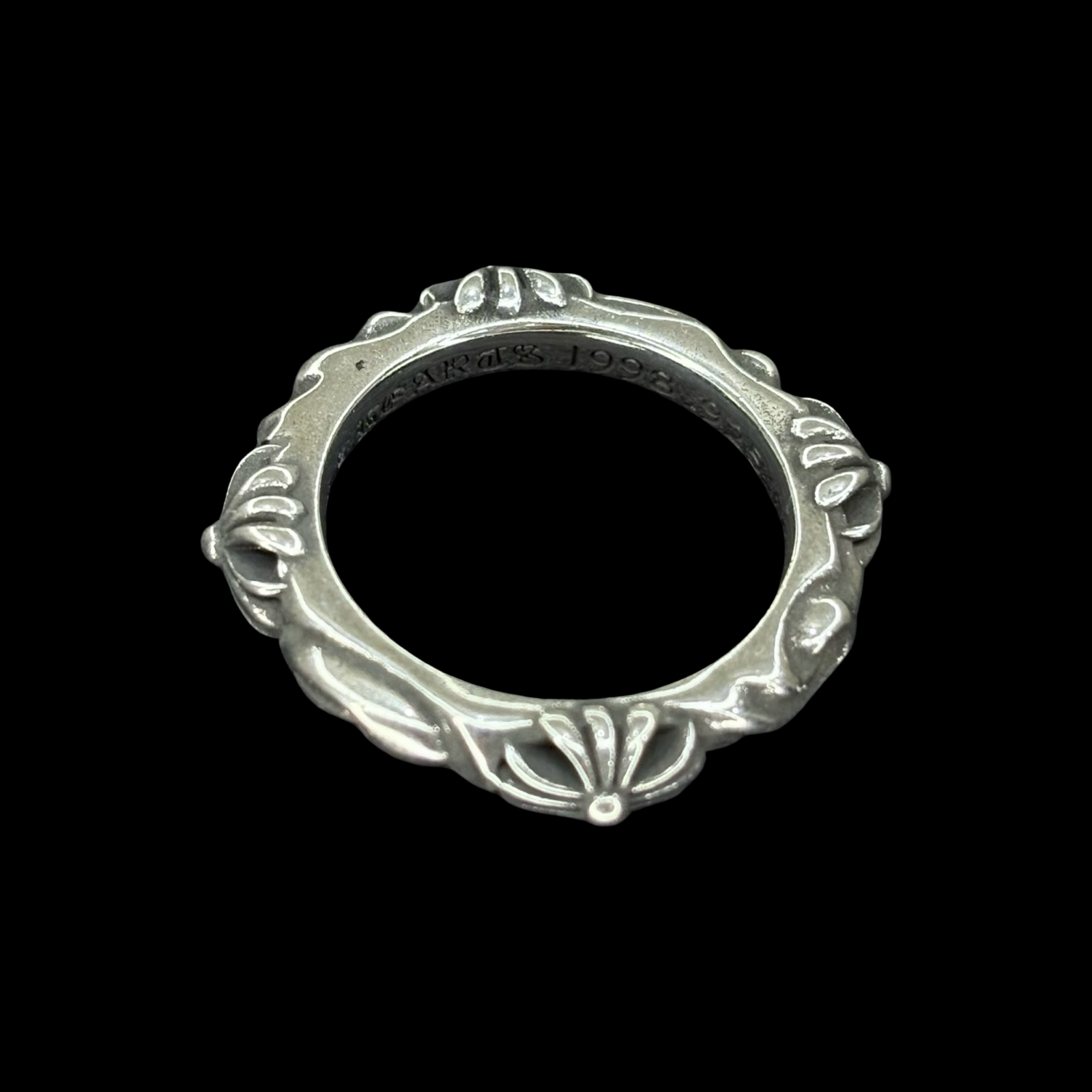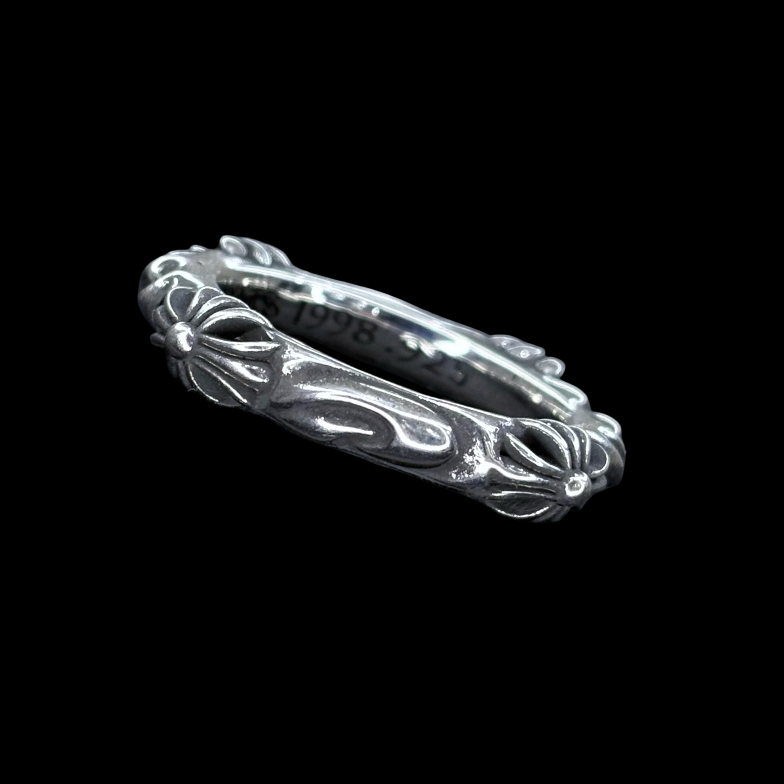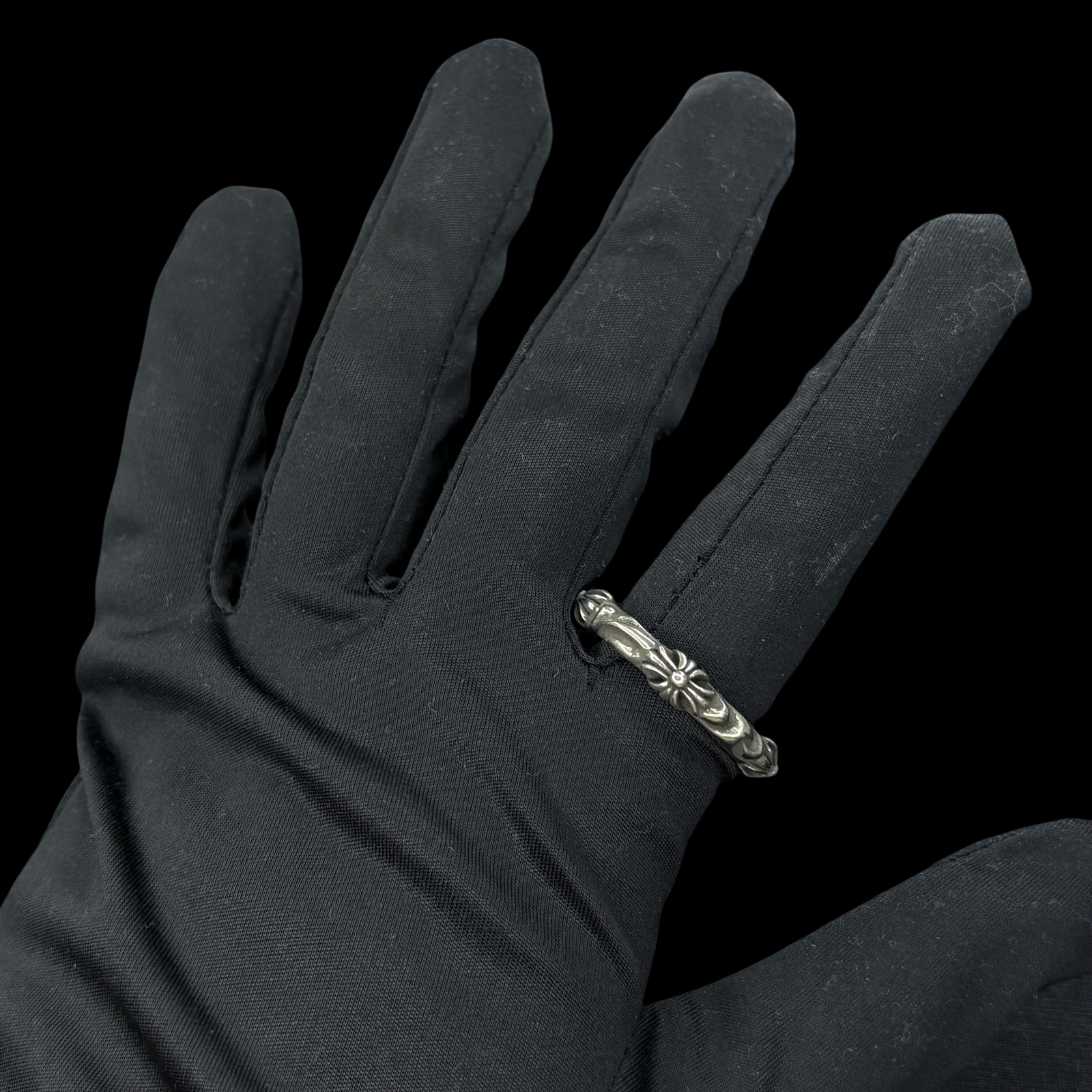 Inspired by the original Chrome Hearts ring, this piece is crafted from stainless steel and comes in a US size 11 as per chart size 21. It features a blurry engraving of “Chrome Hearts” inside the band and is non-adjustable, offering a stylish and durable option for everyday wear.