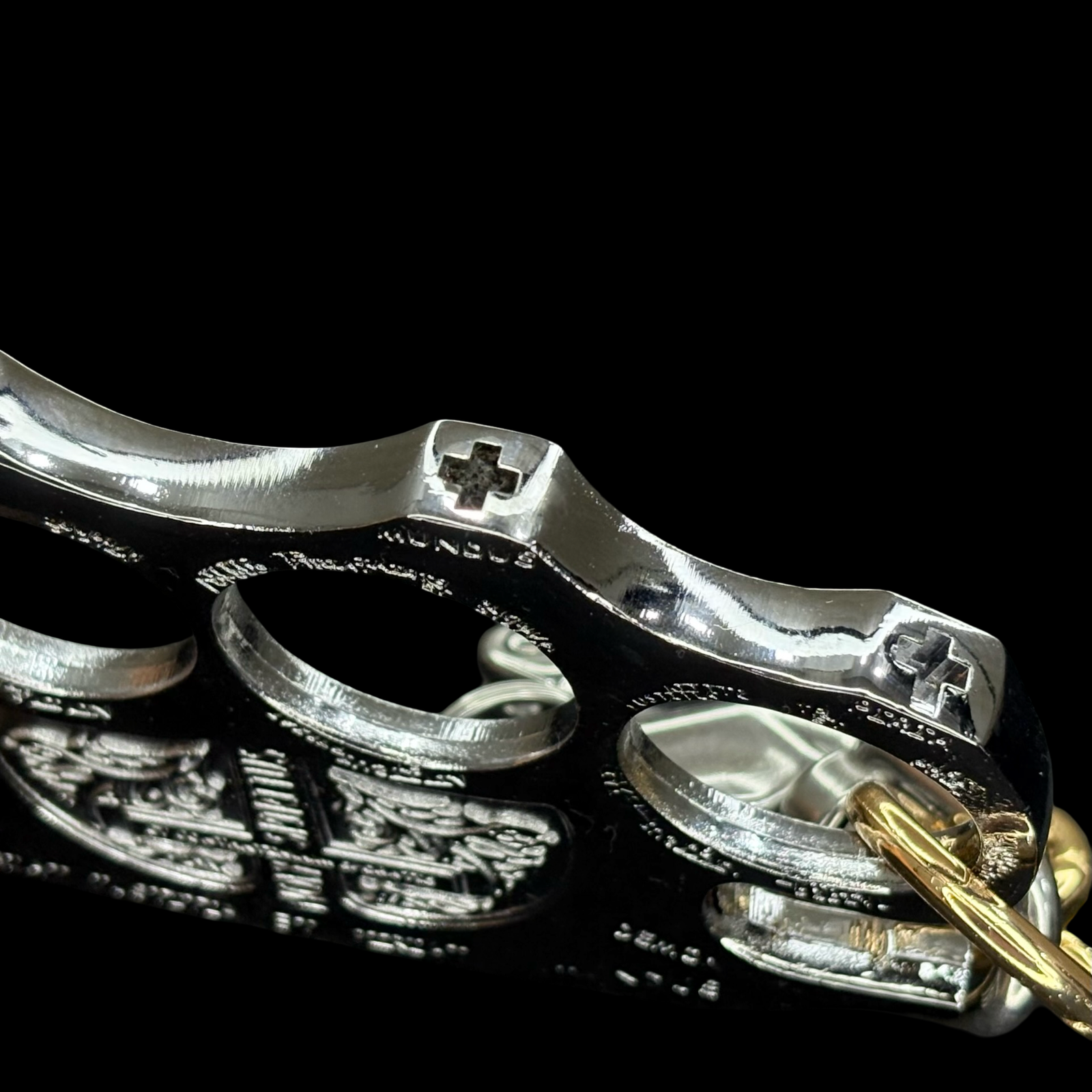 -length: 20cm -knuckle duster: 12*6cm -stainless steel