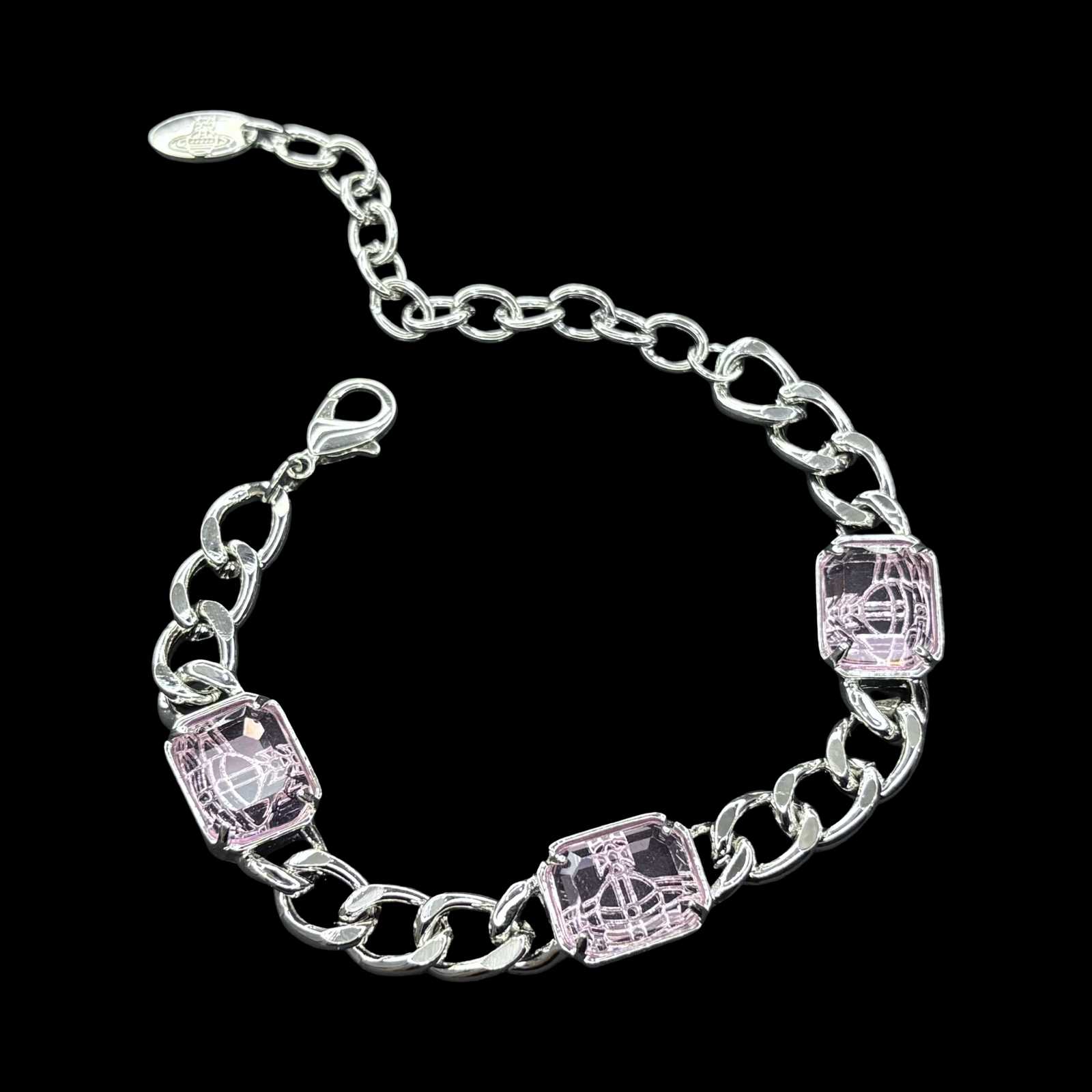 The bracelet also carries subtle Vivienne Westwood-inspired engraving, giving it a luxe, statement aesthetic while staying lightweight and comfortable.