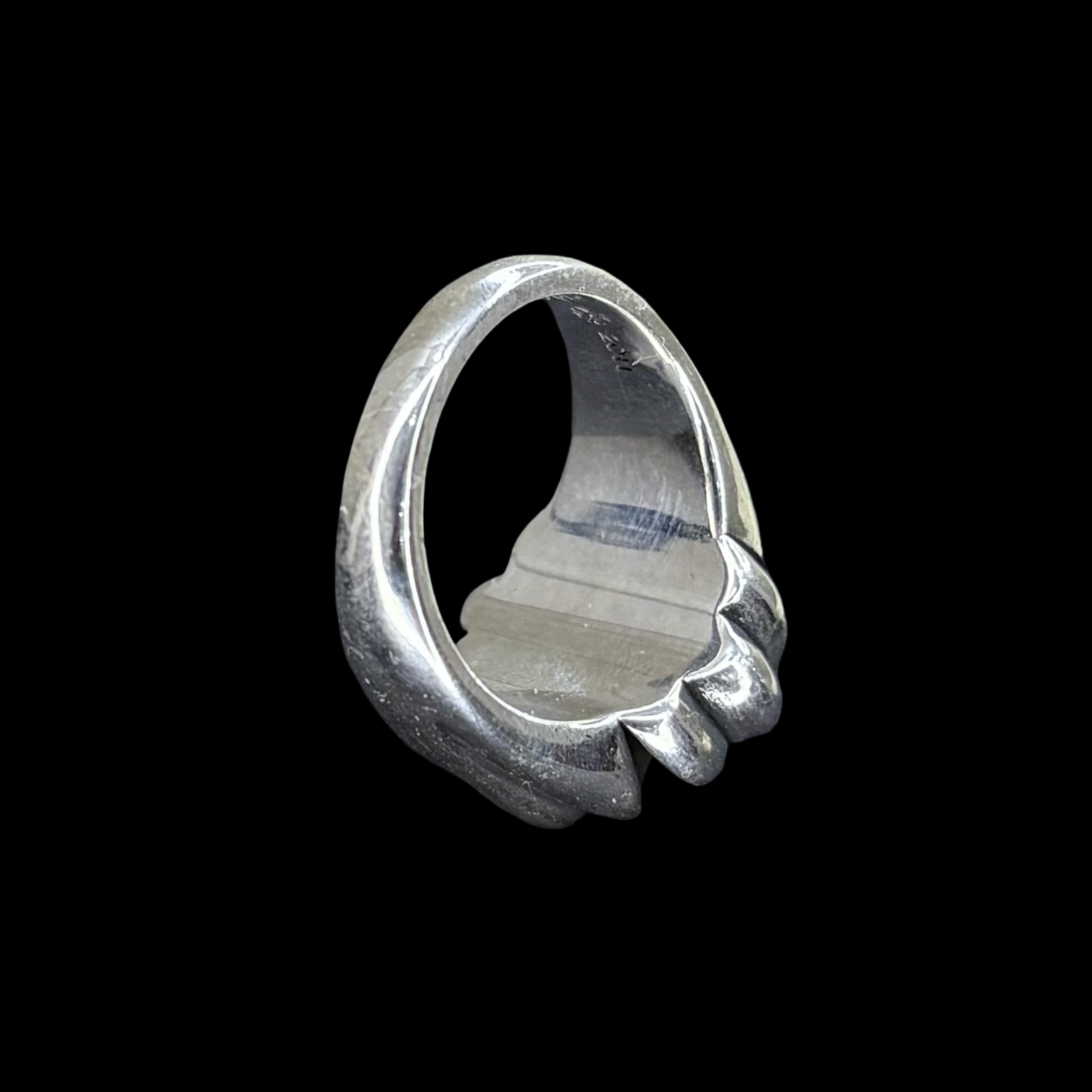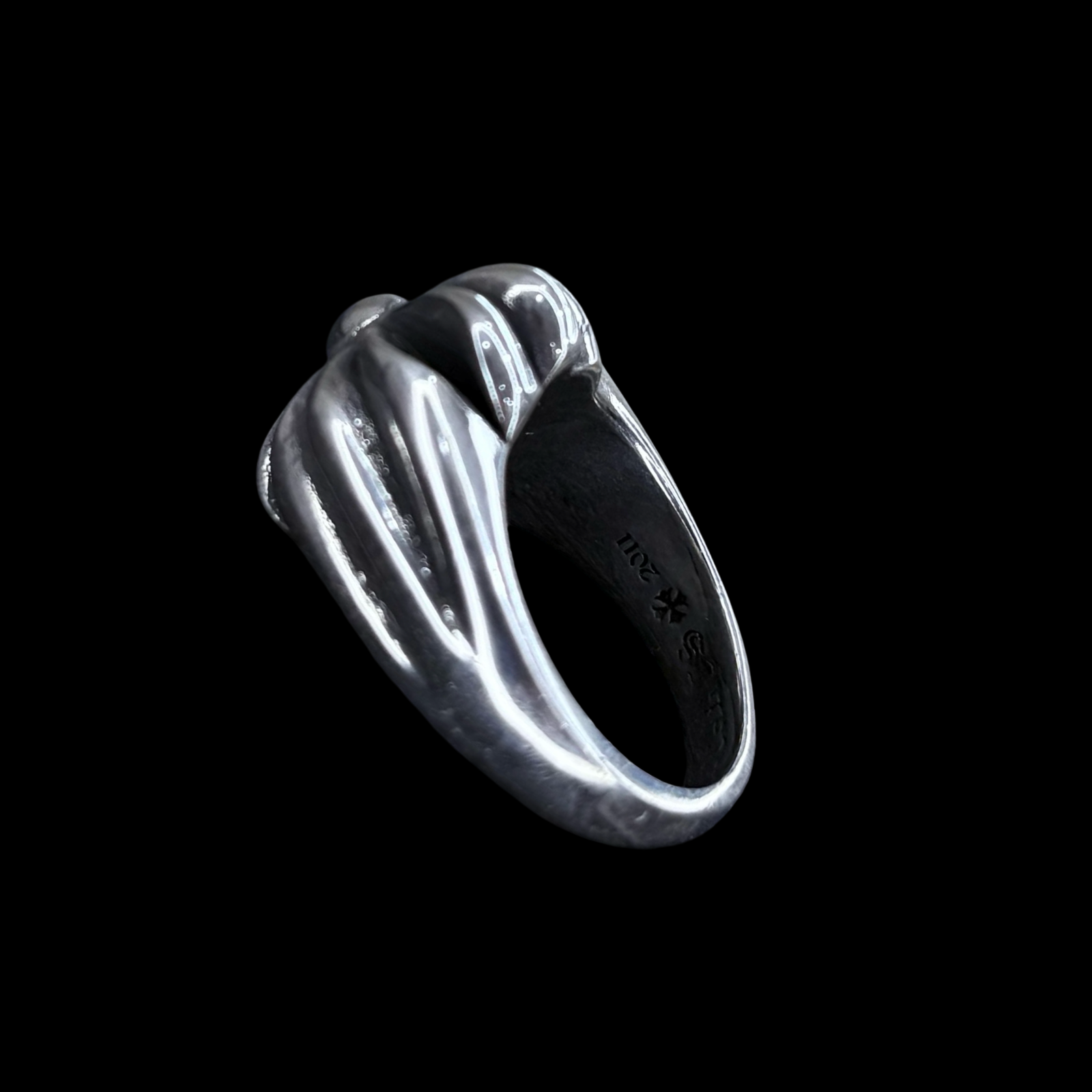 Inspired by the original Chrome Hearts ring, this piece is crafted from stainless steel and comes in a US size 10 as per chart 20. It features a blurry engraving of “Chrome Hearts” inside the band and is non-adjustable, offering a stylish and durable option for everyday wear.