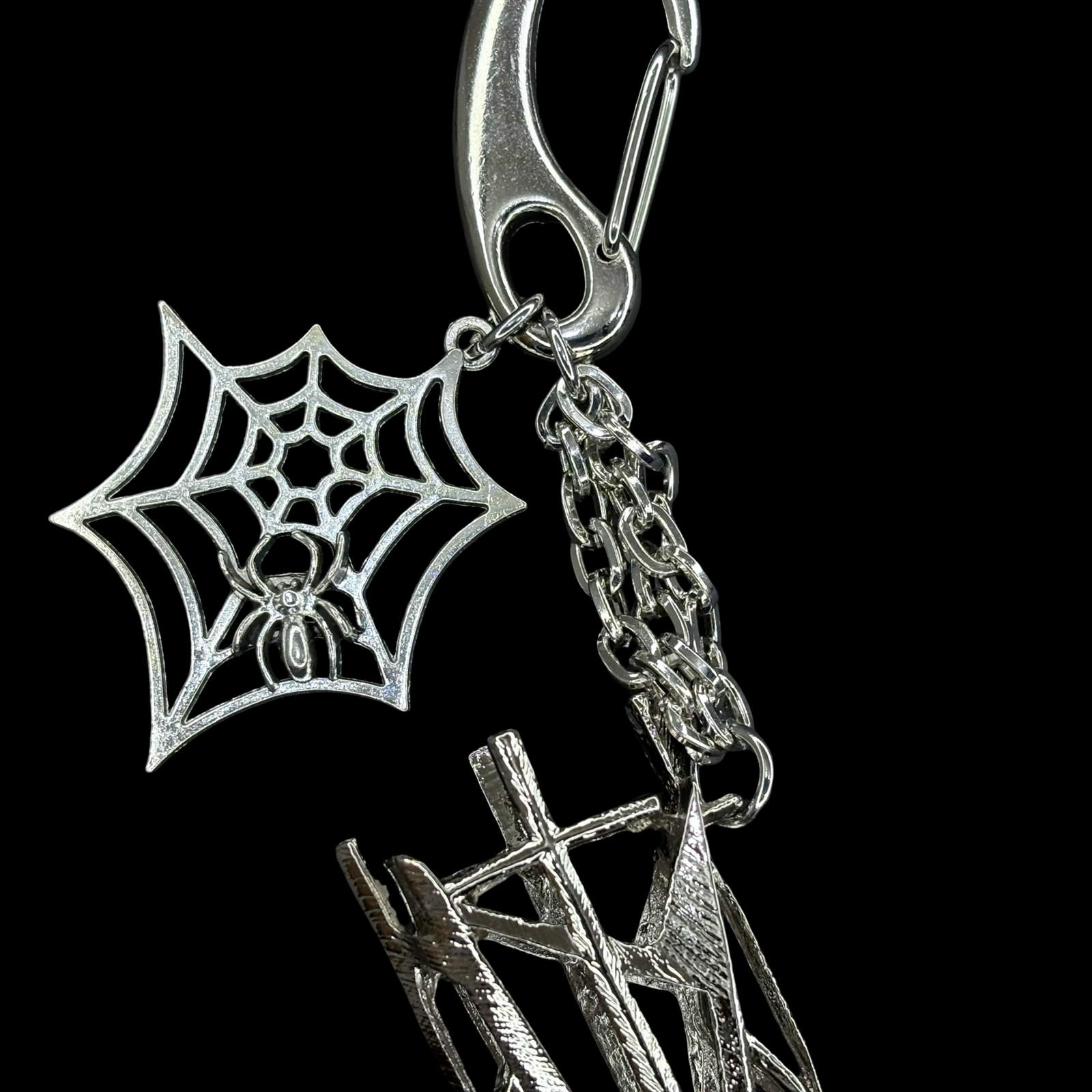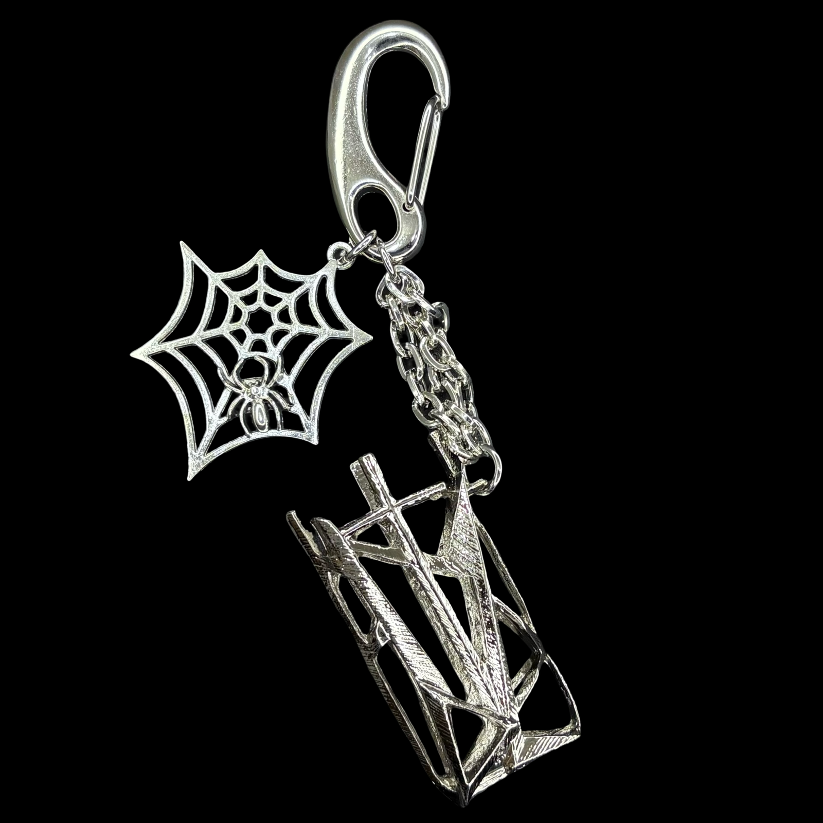 Includes a built-in lighter holder (6 cm × 3 cm) and a spider charm measuring 5 cm × 4 cm.